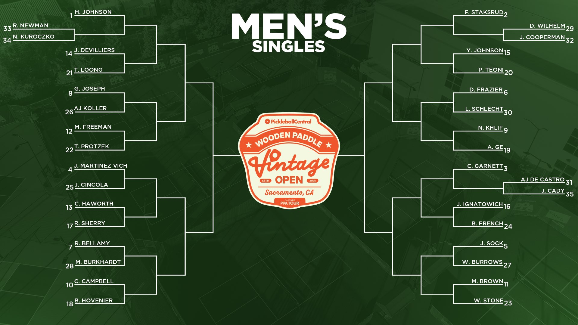 That’s right. The pros will be using wooden paddles provided to them by PickleballCentral (also the marquee sponsor of the event).