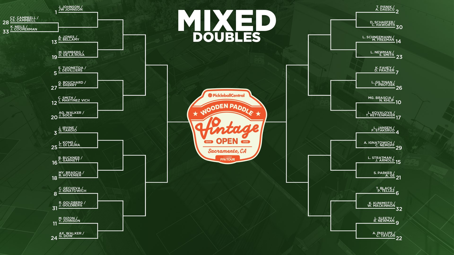 - I love seeing one of the OG couples in pickleball in this draw - (31) Regina and Johnny Goldberg - they may actually have some experience playing with a wooden paddle competitively