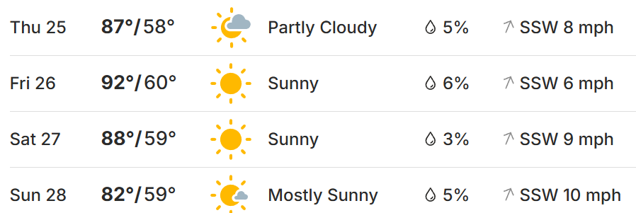 Temperatures with highs in the 80s and 90s mean it will be a little hot for this time of year in northern California. The wind doesn’t look to play a huge factor. With draws as small as they are, conditioning and fitness shouldn’t really play a factor this week.